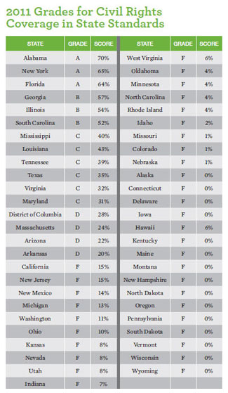 Many more elements are included in the SPLC recommendations. You can read Teaching the Movement: The State of Civil Rights Education in the United States 2011 or download a pdf version of the document.